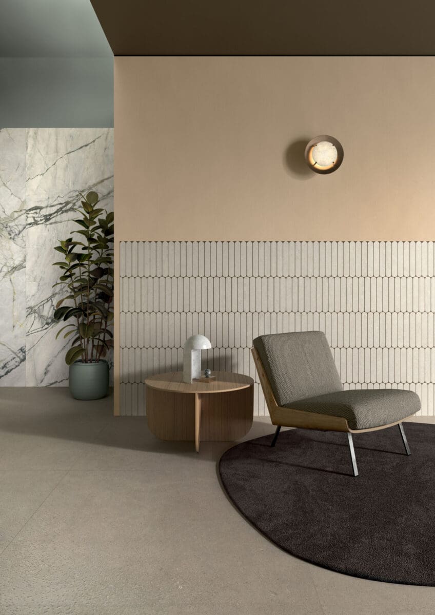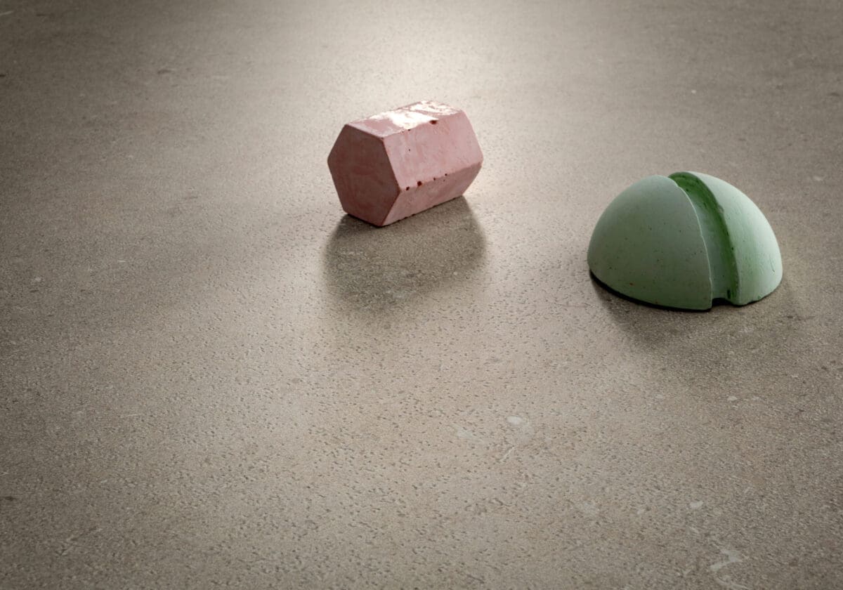 Intense Toffee Tile - Inspired by sedimentary limestone, the Intense collection faithfully reproduces the clastic granularities and fossil micro-inclusions typical of this stone, restoring an authentic natural emotion.