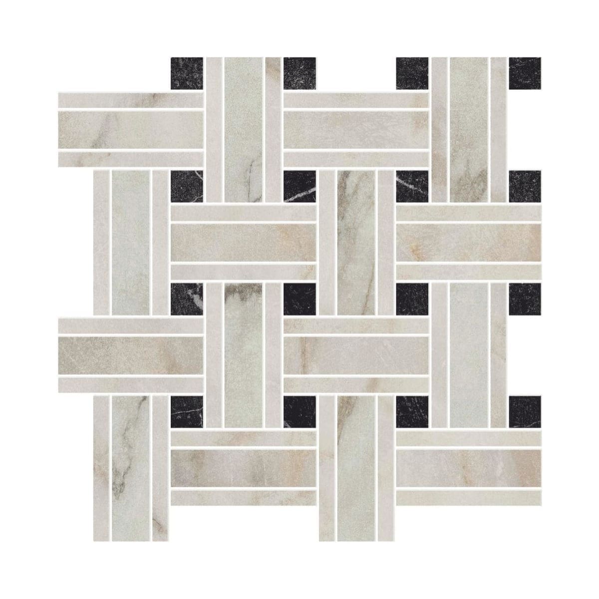 Livingstone Basketweave Melange / Nero / Gold Tile - Livingstone embraces historic marble trends with a classical twist. Dive into multiple options of format and mosaics for your project, with a particular attention to our cassettone and basketweave patterns, a beautiful addition to any commercial or residential space.