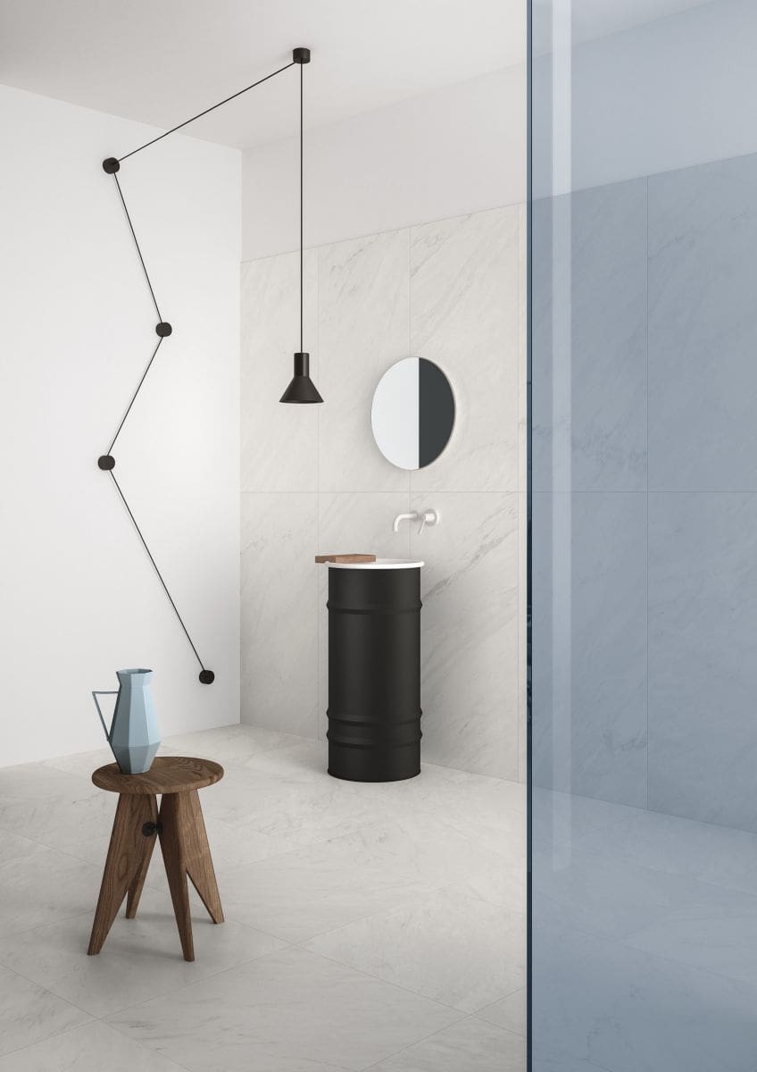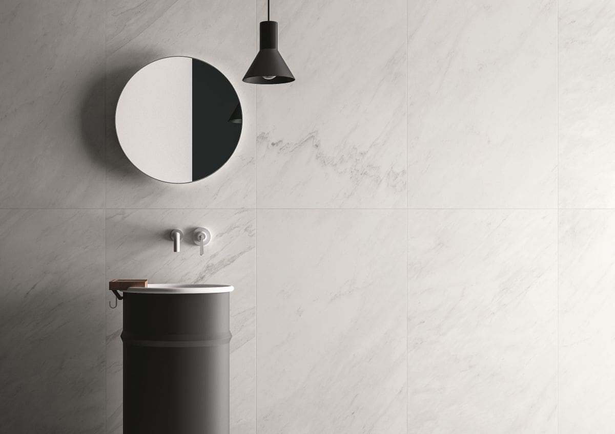 Marble Lab Premium White Tile - Marble Lab is the most refined selection of Fiandre marbles. The purest shades, each characterised by slight or more intense grains, with the typical ripples of the authentic charm of rare and precious quarries. Developed in high tech laboratories , these timeless pieces blend aesthetic perfection and high performance in a single product.
