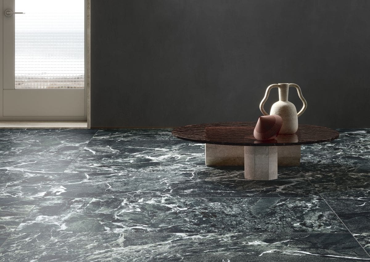 Marble Lab Verde Alpi Tile - Marble Lab is the most refined selection of Fiandre marbles. The purest shades, each characterised by slight or more intense grains, with the typical ripples of the authentic charm of rare and precious quarries. Developed in high tech laboratories , these timeless pieces blend aesthetic perfection and high performance in a single product.