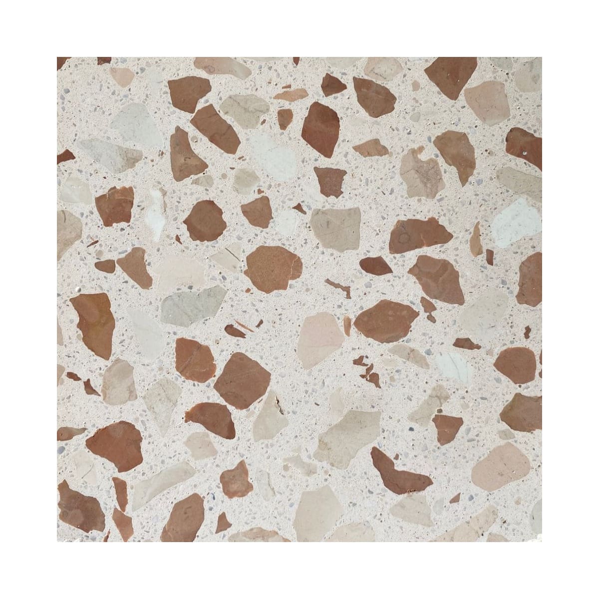 N Stone Terrazzo Alessandria 20 - Terrazzo is a word derived from the Italian to designate any mosaic flooring by embedding small pieces of marble or coloured stone coming from working waste recycling in a cement compound followed by polishing the surface. This material is extremely durable, and starts its life in a slab format, so can be cut and manufactured into various sizes / shapes / special pieces such as vanity units, to add a seamless feel to any project.