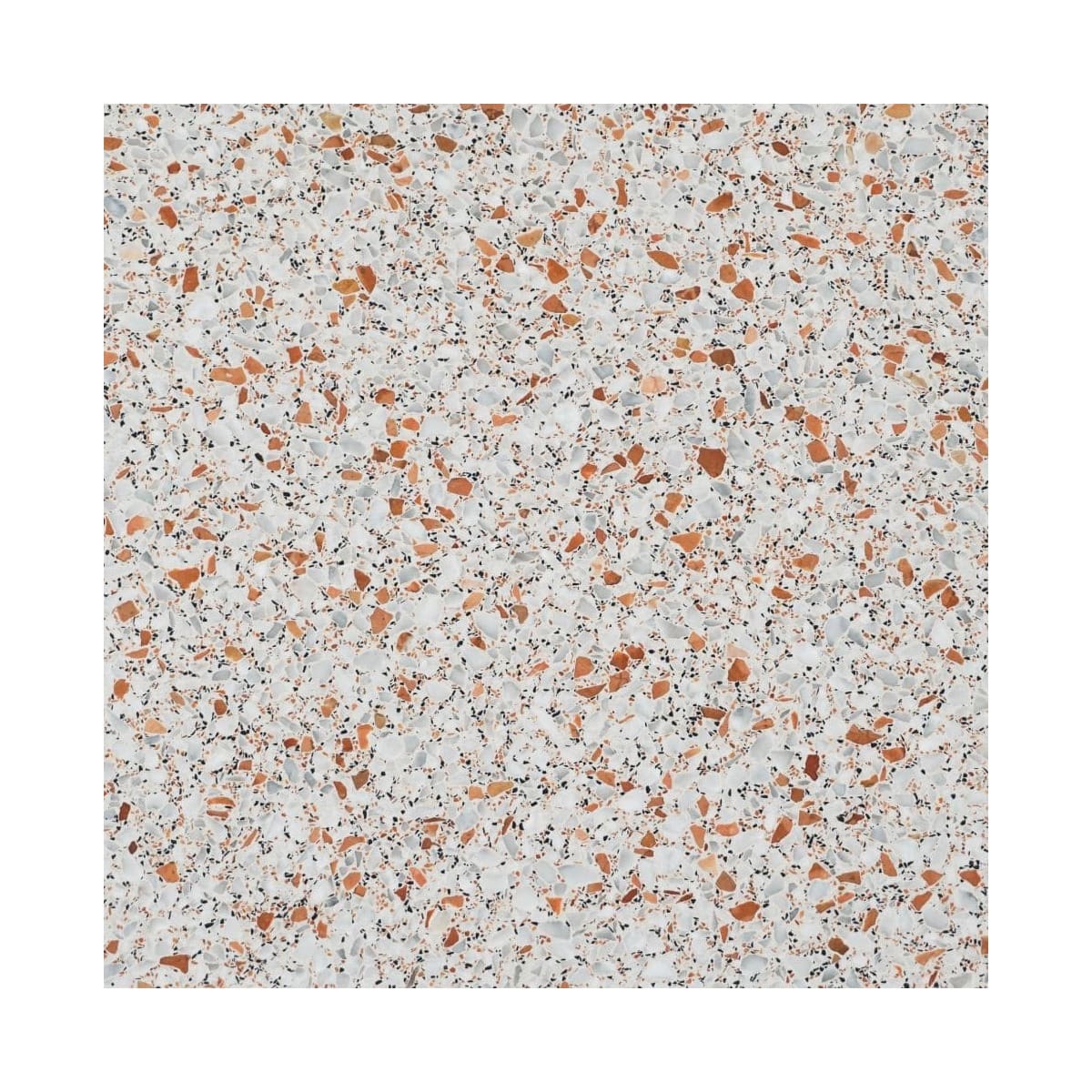 N Stone Terrazzo Alghero 09 - Terrazzo is a word derived from the Italian to designate any mosaic flooring by embedding small pieces of marble or coloured stone coming from working waste recycling in a cement compound followed by polishing the surface. This material is extremely durable, and starts its life in a slab format, so can be cut and manufactured into various sizes / shapes / special pieces such as vanity units, to add a seamless feel to any project.