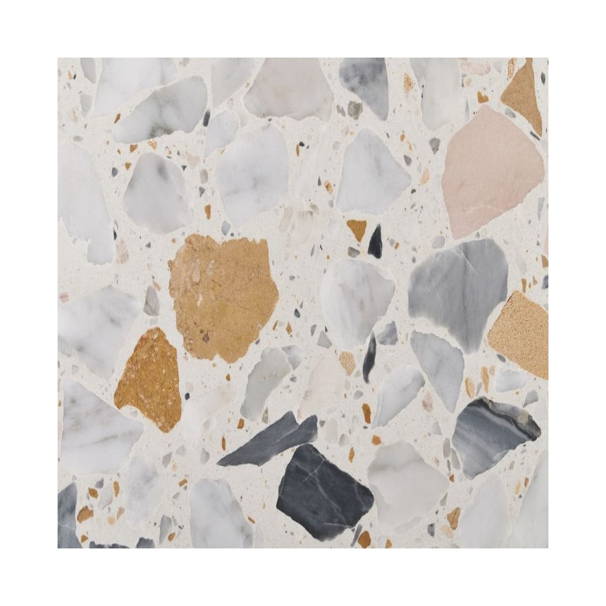 N Stone Terrazzo Firenze 30 - Terrazzo is a word derived from the Italian to designate any mosaic flooring by embedding small pieces of marble or coloured stone coming from working waste recycling in a cement compound followed by polishing the surface. This material is extremely durable, and starts its life in a slab format, so can be cut and manufactured into various sizes / shapes / special pieces such as vanity units, to add a seamless feel to any project.