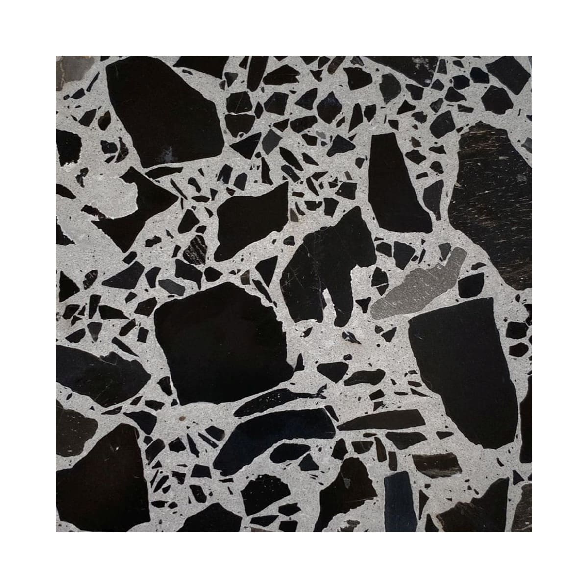 N Stone Terrazzo Roverto 30 - Terrazzo is a word derived from the Italian to designate any mosaic flooring by embedding small pieces of marble or coloured stone coming from working waste recycling in a cement compound followed by polishing the surface. This material is extremely durable, and starts its life in a slab format, so can be cut and manufactured into various sizes / shapes / special pieces such as vanity units, to add a seamless feel to any project.