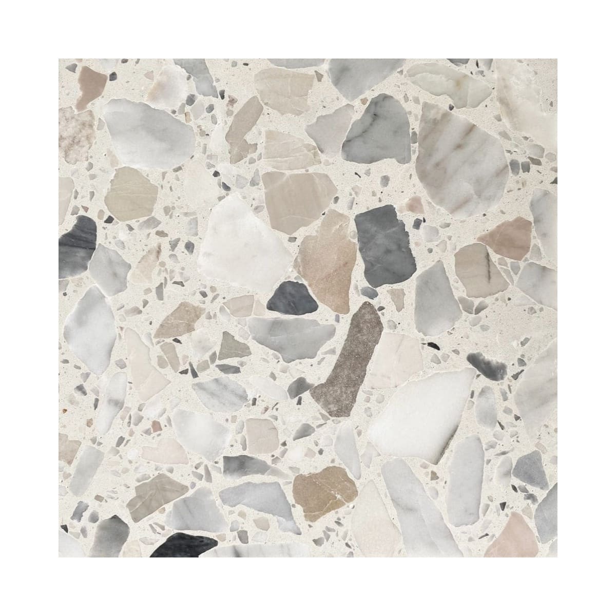 N Stone Terrazzo Stintino 40 - Terrazzo is a word derived from the Italian to designate any mosaic flooring by embedding small pieces of marble or coloured stone coming from working waste recycling in a cement compound followed by polishing the surface. This material is extremely durable, and starts its life in a slab format, so can be cut and manufactured into various sizes / shapes / special pieces such as vanity units, to add a seamless feel to any project.