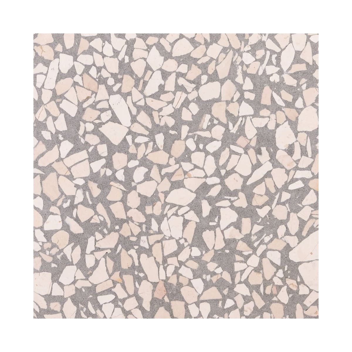 N Stone Terrazzo Venezia 12 - Terrazzo is a word derived from the Italian to designate any mosaic flooring by embedding small pieces of marble or coloured stone coming from working waste recycling in a cement compound followed by polishing the surface. This material is extremely durable, and starts its life in a slab format, so can be cut and manufactured into various sizes / shapes / special pieces such as vanity units, to add a seamless feel to any project.