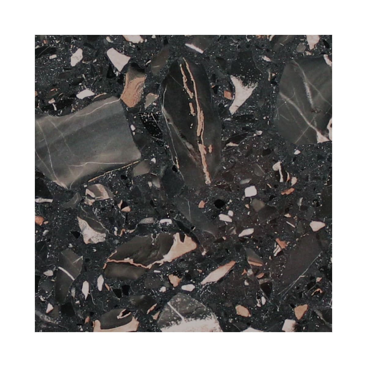 REM Nero Portoro - Engineered resin marble is a precast material composed of marble chips bonded together with special resins and pigments. Manufacturing to perfection, we incorporate 1st choice quality marble, bonded by the most advanced resins and respect the resin maturation time, to create a huge selection of colours different to that which can be derived from Terrazzo. This material is extremely durable, and starts its life in a slab format, so can be cut and manufactured into various sizes / shapes / special pieces such as vanity units, to add a seamless feel to any project.