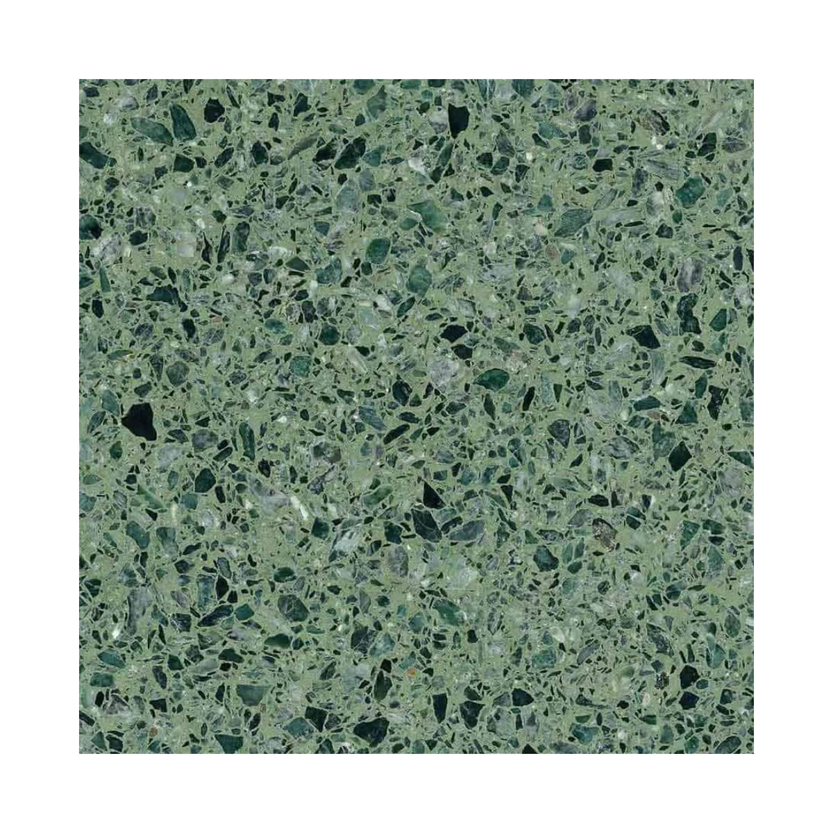 REM Verde 7 - Engineered resin marble is a precast material composed of marble chips bonded together with special resins and pigments. Manufacturing to perfection, we incorporate 1st choice quality marble, bonded by the most advanced resins and respect the resin maturation time, to create a huge selection of colours different to that which can be derived from Terrazzo. This material is extremely durable, and starts its life in a slab format, so can be cut and manufactured into various sizes / shapes / special pieces such as vanity units, to add a seamless feel to any project.