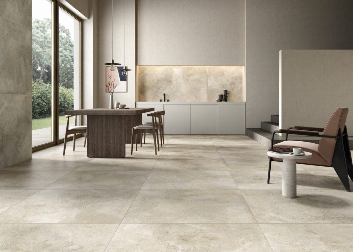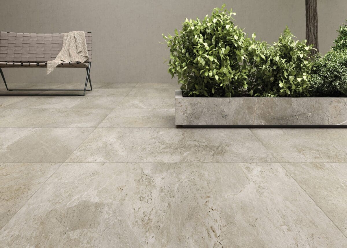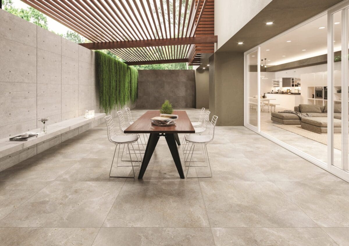 This tile comes in two finishes a standard matt and slip resistant grip finish. The grip finish is available in 600 x 600mm or 1,000 x 1,000mm tile sizes and has a slip resistance of R11/PTV36, which is more suitable for wet areas, commercial and outdoor settings.
