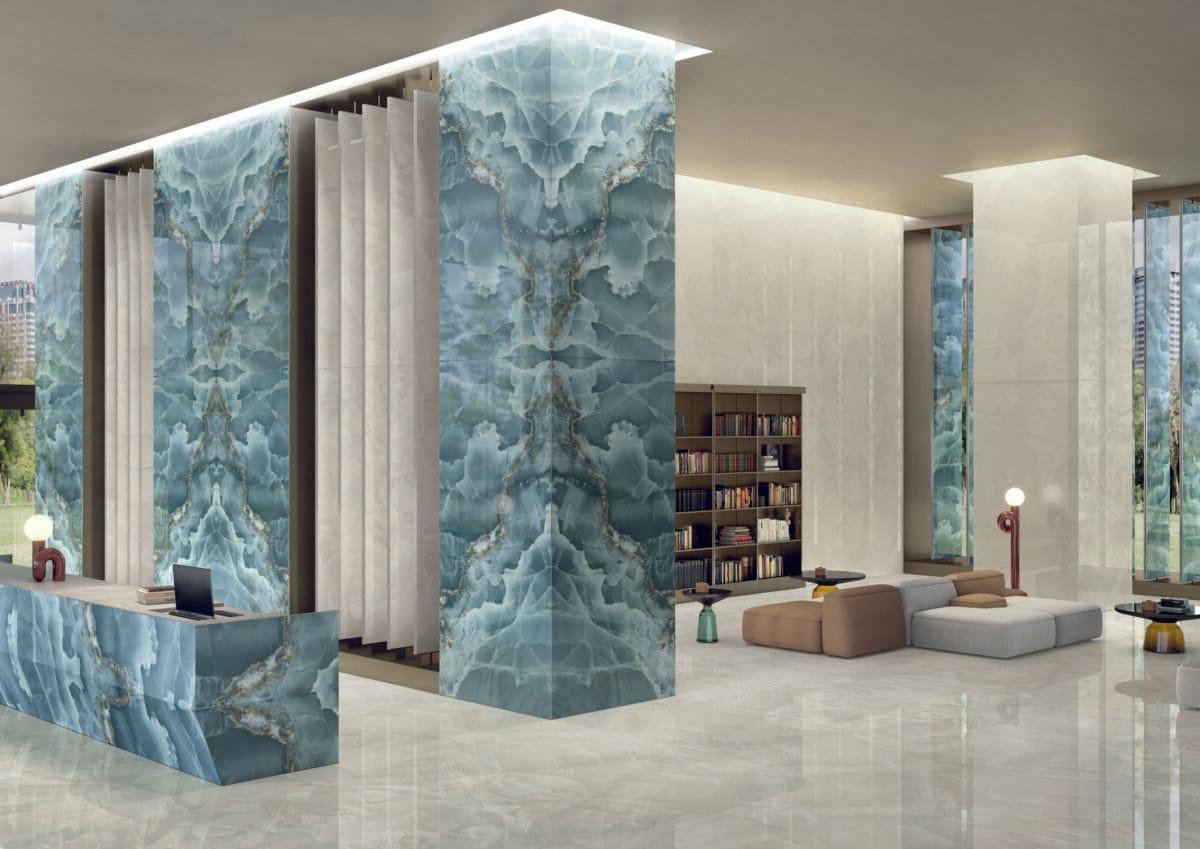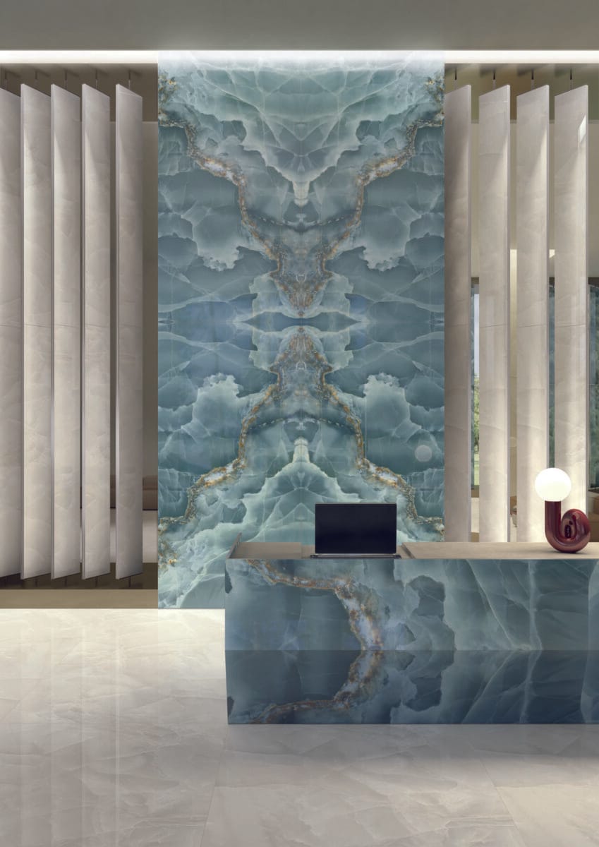 XXL Onyx Ivory Bookmatched Tile - Explore the beauty of our large format orcelain slab range XXLi. Boasting multiple different colours, shapes and sizes, this range can cater for any project, as well as using our in house fabrication system to create bespoke pieces to compliment your project.