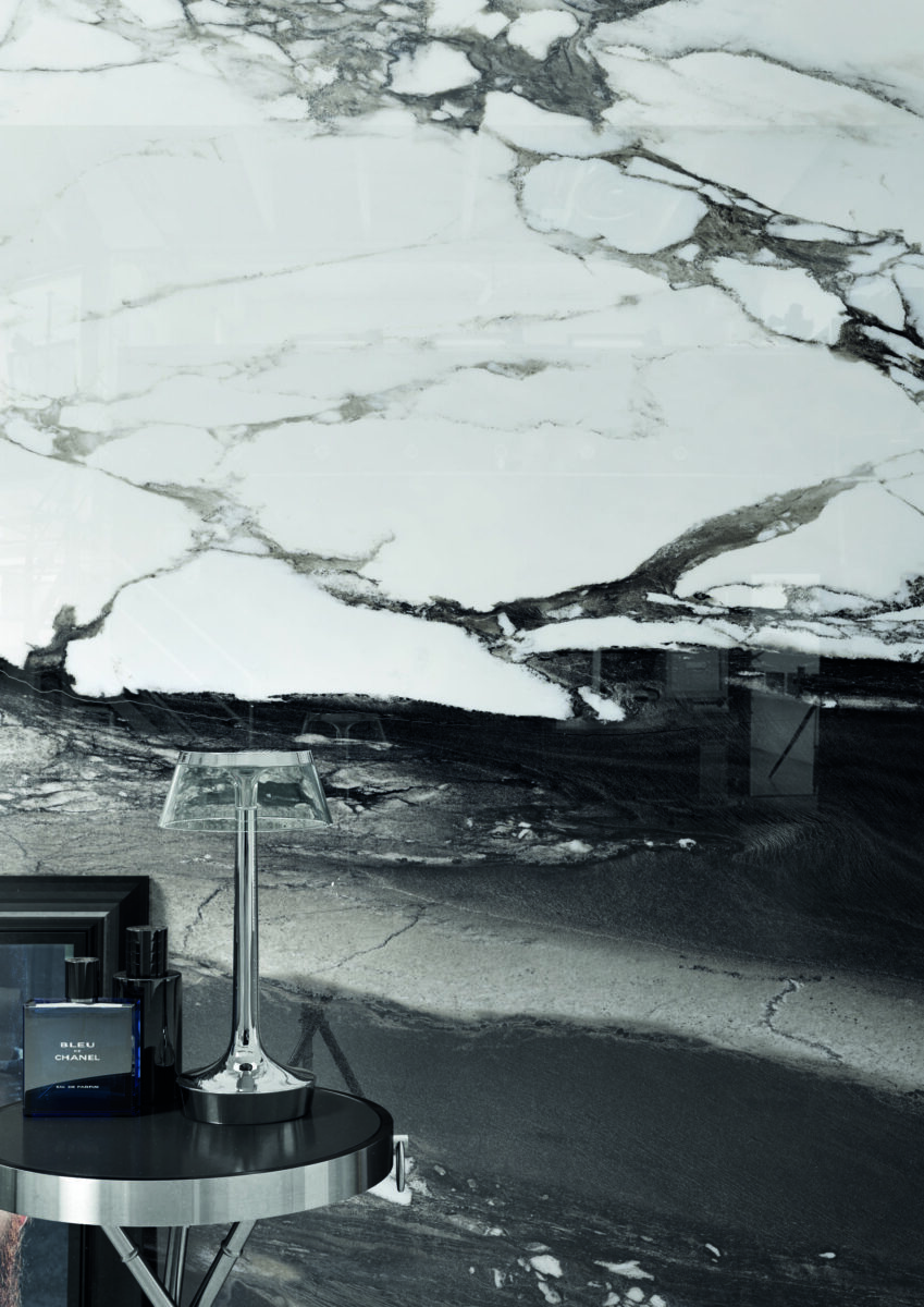 XXL Renoir Calacatta Bookmatched Tile - Explore the beauty of our large format orcelain slab range XXLi. Boasting multiple different colours, shapes and sizes, this range can cater for any project, as well as using our in house fabrication system to create bespoke pieces to compliment your project.